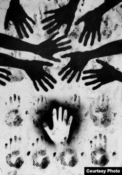 „Раце (позитив - негатив)“, акрил на хартија, дело на Стефан Младеновски од изложбата „Слики“