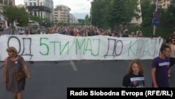 Неколку стотини луѓе со парола „Од 5-ти мај до крај“ тргнаа од пред Владата кон Министертвото за правда каде што скандираа „Оставка“, „Николче диктоторче“, “Долу дикататурата“, „Оди си“.