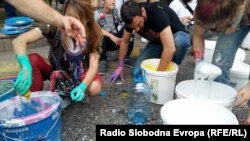 Демонстрантите на „шарената револуција“ ги подготвуваат боите пред Специјалното јавно обвинителство од каде протестот ќе го продолажт пред Собранието. Шарената револуција денешниот протест ќе го посвети на стрип - јунакот Пецко, со што ќе му оддадат почит на легендарниот карикатурист Дарко Марковиќ.