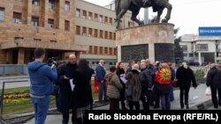 Петнаесетина поддржувачи на Семакедонскиот национален совет – Македониум денеска излегоа на протест пред Собранието против изгласувањето на Законот за јазици, со кој и албанскиот јазик влегува во службена употреба.