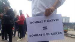 Демонстрантите скандираат „Нема правда, нема мир“, „Сакаме слобода“ и „Али предавник“. Тие велат дека бомбите на Ел Чека се исти како тие на Заев.